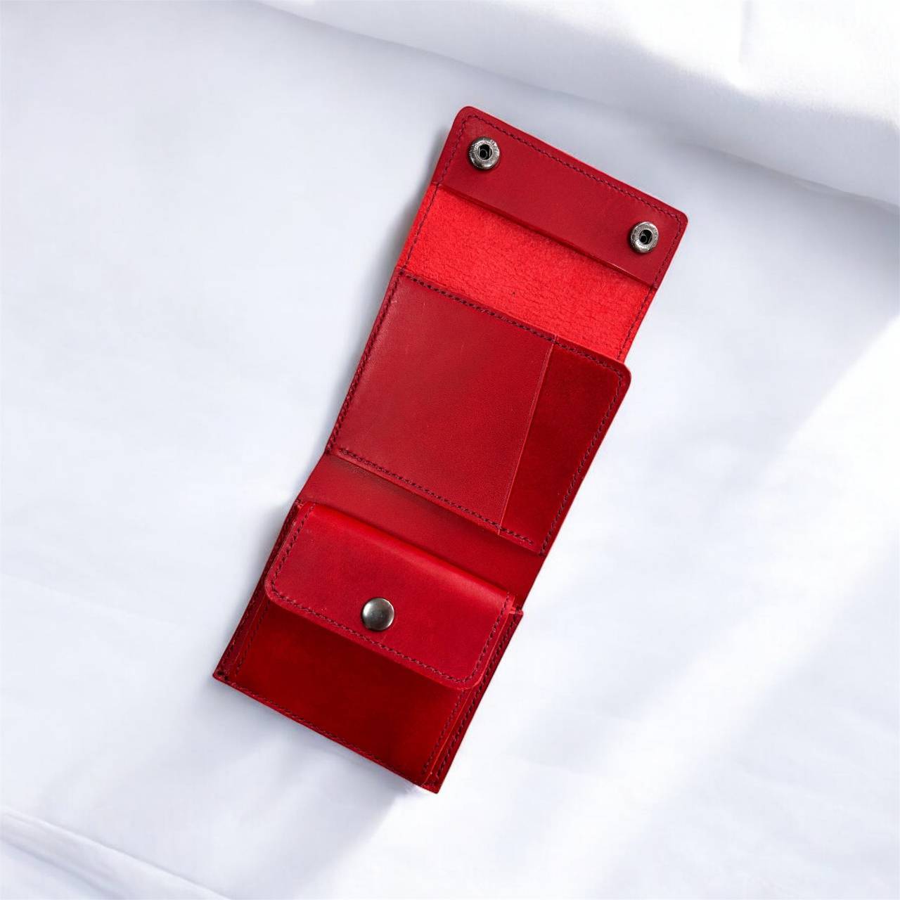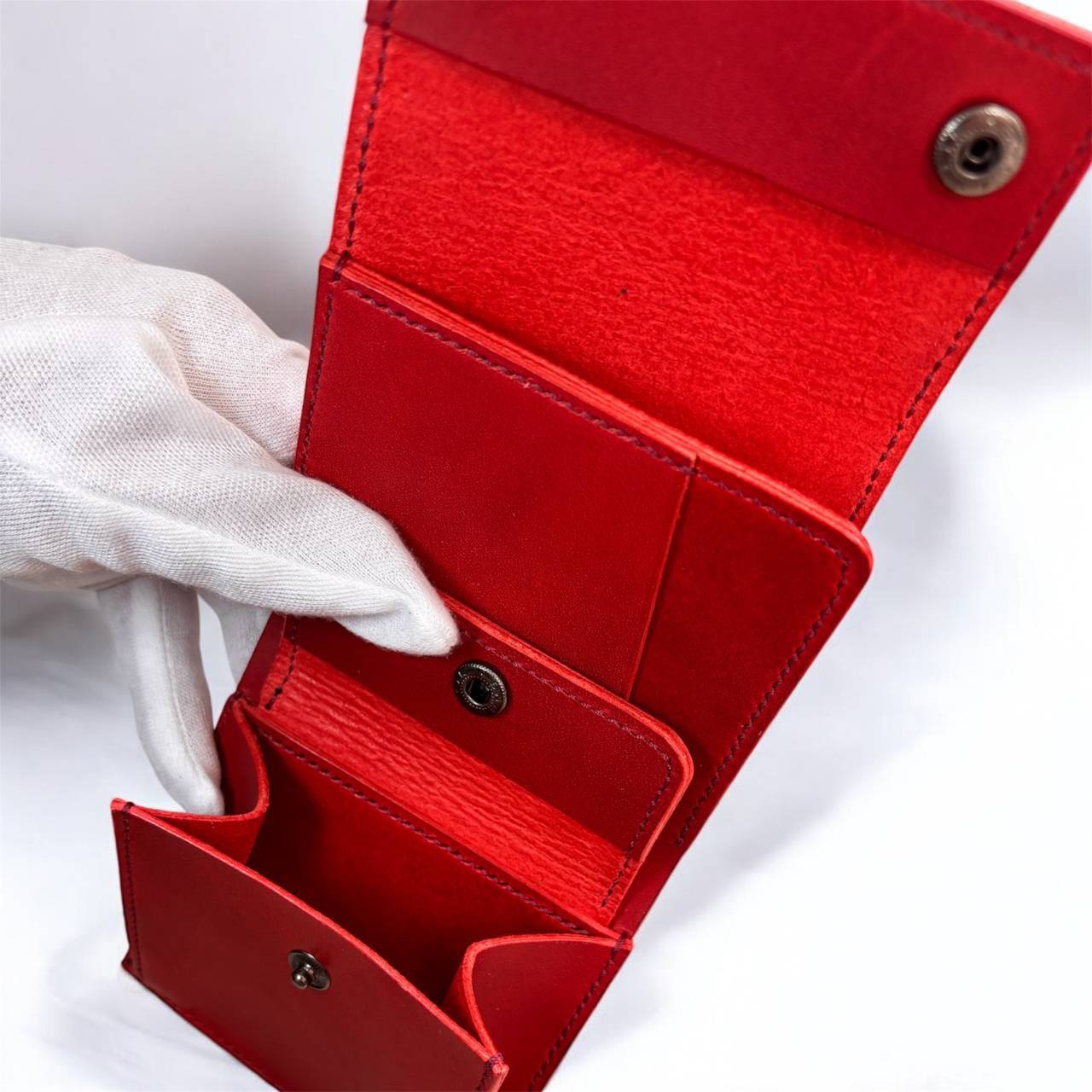 上質な本牛革を使用して製作した、コンパクトで軽やかな二つ折りです。しっとりとした質感が特徴で、シンプルながらも洗練されたデザインが魅力です。お札やカードが効率よく収納できる設計で、小さなバッグにもぴったりフィットします。
