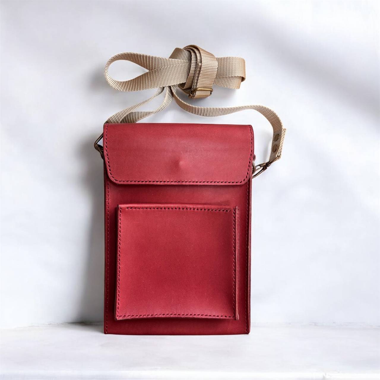 牛革のミニショルダーバッグ‐赤色